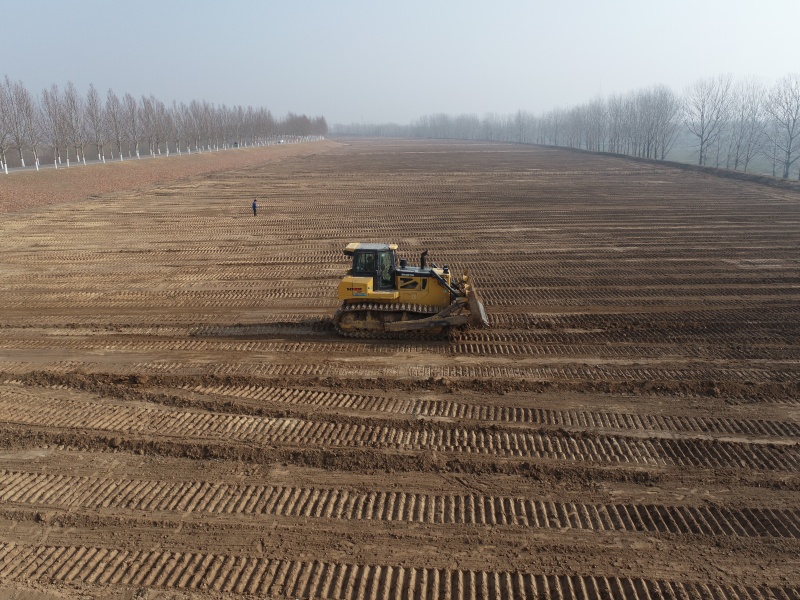 二月清晨的寒风依旧刺骨,鄄城黄河的淤背区上却早已是机械轰鸣。“平地是种树的第一步,咱多费点力,树苗才能扎稳根,大家加把劲!”在陈段长的加油鼓气声中,大家干劲高涨,现场一派热火朝天。推土机、刮平机正在进行精细化作业,对高低不平的地块进行精准“削峰填谷”;干部职工与施工人员协同配合,对成方连片的大地块进行机械整平,边角区域、树穴周边进行人工细化,彻底清除地表的杂草、碎石与残留树根。同时,严格把控土地的疏松度与平整坡度,确保每一寸土地都达到土松、地平的待植标准。大家齐心协力为即将到来的新绿铺展沃土。