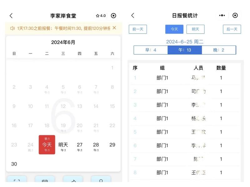 最让人津津乐道的是食堂里的对话。“今天中午的菜量刚好,看来咱们的报餐小程序真管用!”炊事员于师傅一边收拾一边说。职工小王接话:“是啊,自从用了这个程序,食材浪费减少了,大家都说饭菜更新鲜了。”