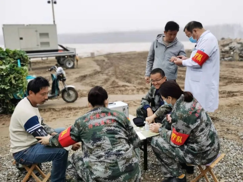 2021年,黄河山东段遭遇罕见秋汛。山东黄河医院党总支闻“汛”而动,将防汛一线作为践行初心使命、检验党史学习教育成果的“主战场”。两批次6支防汛医疗救护队紧急驰援,党员先锋和青年骨干并肩作战。他们夜以继日、风雨兼程,在20多天的防御战中,足迹遍布防汛阵地210余处,为防汛一线送去必需药品、防疫物资34箱,提供医疗服务和健康指导约2000人次,处置异常指标700余人次,用专业和仁心筑起了一道坚实的“健康堤坝”,以实干和担当践行了“防汛有你、护航有我”的庄重承诺。