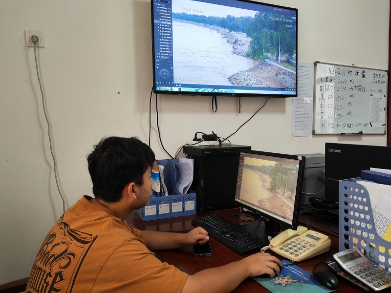“孙口水文站实时流量3730立方米每秒,水位45.27米,路那里险工根石稳固,无异常情况!”该局防汛办公室工作人员张申奥轻点“云黄河”平台,将河道水情、工程状态等数据即刻汇总,以便分析决策。“云黄河”系统整合了水位、流量……等监测数据,这些数据像“血液”一样在云端流动,实时研判水情变化趋势。“以前查数据要翻好几本台账,现在打开系统,‘黄河动态’一目了然,还能预测水位变化。”张申奥继续说道:“这套智能系统,真正成为了梁山黄河保护治理的‘智慧大脑’”。