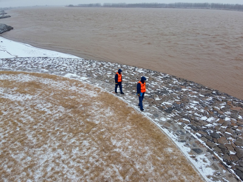 他们细致观察流凌密度、冰凌大小,精准测量工程坡度、水位变化,认真记录每一组数据,仔细感知冰层下河水的“心跳”,用专业与坚守捕捉着凌情的每一丝变化。每一个数据都关乎对险情、凌情、工情的研判,影响着防凌工作的决策部署,他们不敢有丝毫懈怠,踩着坚实的步点,日夜巡行在堤防之上,用脚步丈量着守护的长度,用坚守诠释着责任的重量。