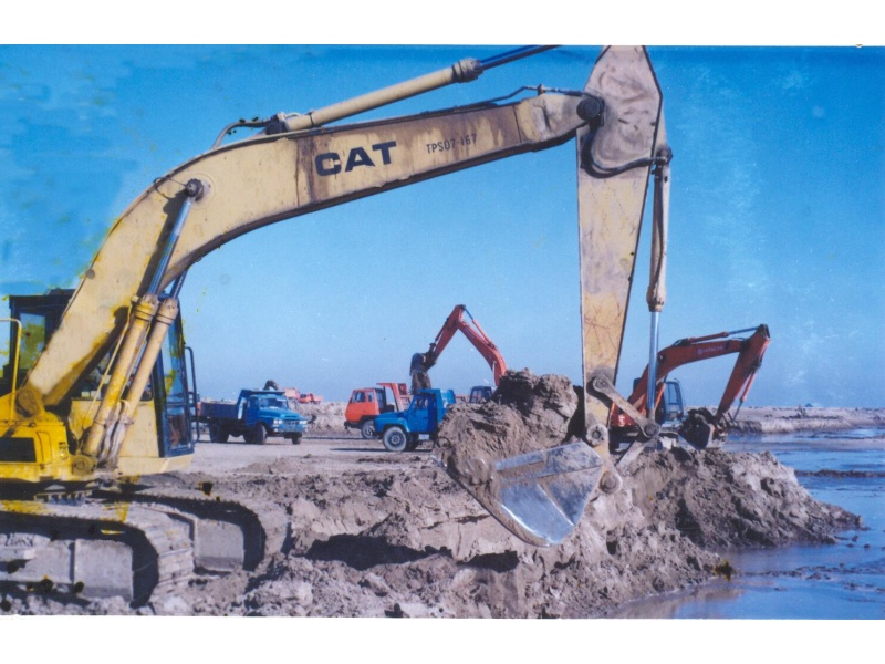 图:1997年11月黄河口挖河固堤在利津崔庄控导启动(黄河河口管理局提供)