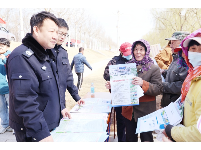 沿黄集市里,普法志愿者“摆摊设点”,用接地气的语言向来往群众讲解违规取水、非法采砂、破坏黄河生态的法律后果,让群众认清违法红线、树牢守法自觉。
