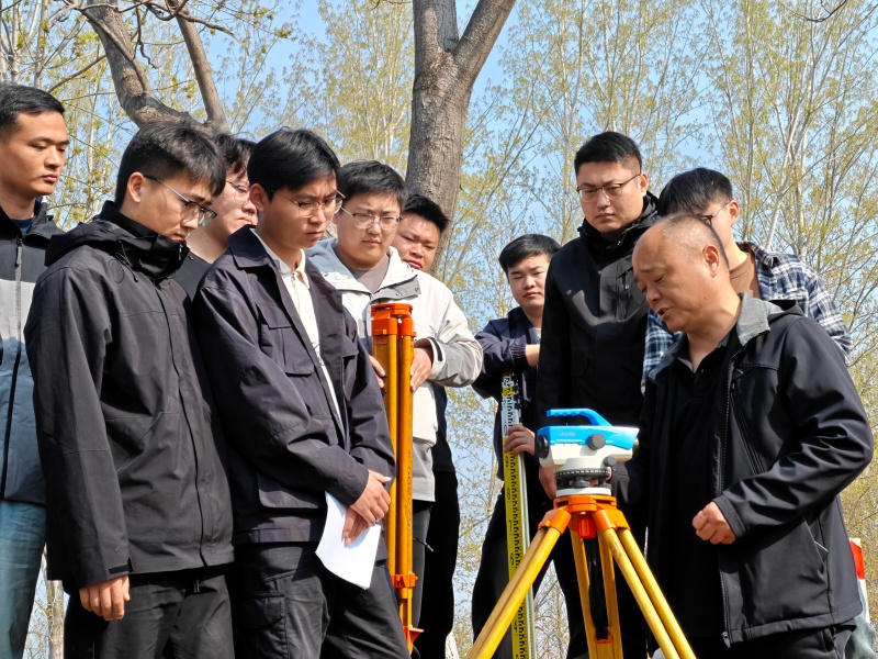 “庞老师,我刚架好调平的仪器,还没测,气泡就偏了?”第一次接触水准仪的学员王海超问道。庞勇笑着上前:“别急,仪器支在边坡上,脚架不踩实扎进土里,容易倾斜。调平后还要水平转动一圈,确保气泡始终居中,再观测。