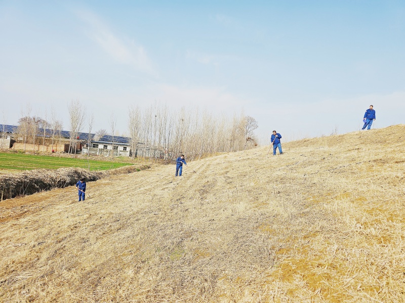 春雨润物,亦滋生违章种植。为维护工程完整,保障河道行洪安全,该段以“清存量、控增量”为抓手,全力开展专项整治。职工深入田间地头,向沿黄村民精准普法,耐心解读相关法律法规,深入浅出地阐明违章种植的危害。针对去年违规种植侵占工程范围的问题,坚持守土有责,依法依规,集中清理,彻底恢复工程原貌。