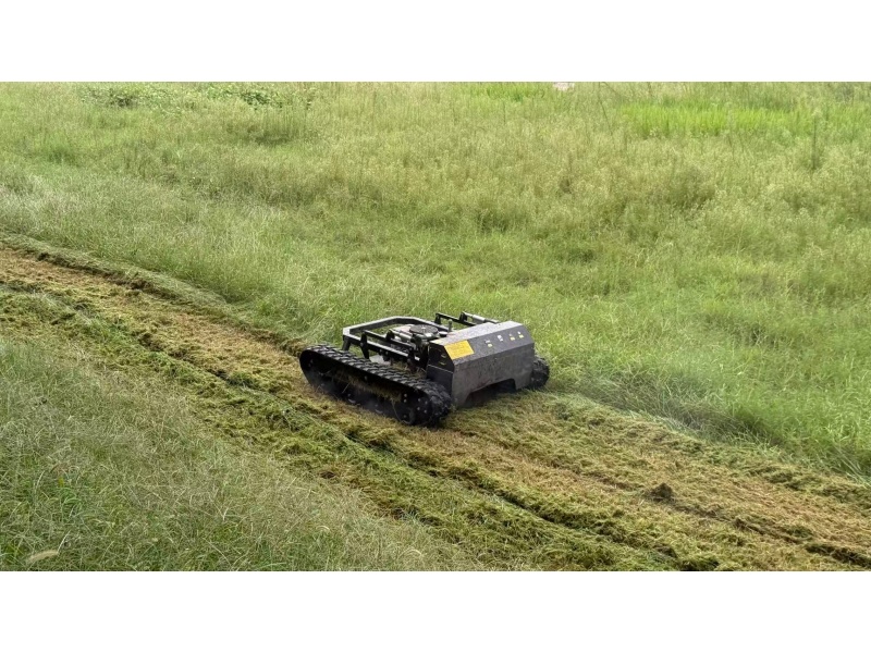 为破解这一难题,该段主动探索,积极与科研企业对接合作,引入履带式无人打草车,开启了“智慧管护”新模式。首次调试设备时,职工们围站一旁、满心期待,随着操作人员按下遥控按钮,小巧灵活的履带式无人打草车缓缓启动,其履带式底盘接地比压小、爬坡能力强,即便在崎岖不平的堤坡上也能稳稳贴合地面、灵活穿梭,锋利的刀头高速旋转,将杂草精准切割、粉碎,原本难以清理的管护死角,转眼间便变得干净整洁。