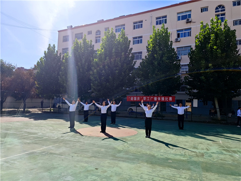 活动开始后,参赛队伍们伴随着音乐声依次入场,站好队形,每个人都尽自己最大努力的做好每一个动作,跟好每一个节拍,态度严谨,动作舒缓,既展现出职工们认真的工作态度,又表达出对祖国的热爱与忠诚。