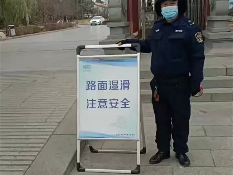 该段全面开展突发恶劣天气安全自查,组织人员对景区重点区域、设施设备进行拉网式排查,及时消除安全隐患,确保各项安全措施落实到位;强化用电安全管理,针对低温天气用电负荷增加的情况,对配电箱、线路、取暖设备等进行全面检查,严防因线路老化、超负荷运行引发安全事故;提前储备应急物资,储备足量融雪剂,并安排专人负责调度使用,确保在积雪结冰第一时间开展除雪除冰作业,保障道路畅通;在景区进出口、公共厕所、临水坝面网红打卡点等人流密集区域显著位置张贴“地面湿滑”警示标识,提醒游客注意安全,防止滑倒摔伤;加强预警信息发布,通过保安、值班工作群及时转发气象部门发布的降雪预报信息,做到早预警、早准备、早防范;严格落实防凌值班值守制度,实行24小时值班和领导带班机制,确保人员在岗、通讯畅通、响应迅速,全力保障极端天气下景区安全有序运行。