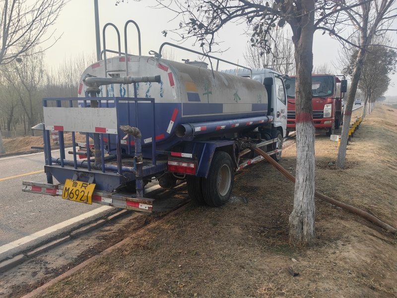 该段对14.4公里堤防沿线的新植区域,职工们分工协作忙而有序。针对风雨导致的歪斜苗木,大家先用铁锹松动根部土壤,再精准扶正树干,配合培土夯实固定,避免二次倒伏。封土环节采用“环形筑堰”法,在树根周围堆起弧形土坝,形成保墒“棉被”,有效减少水分蒸发。现场,2辆水罐车与水管管网联动作业,职工们根据柳树、白蜡树等不同树种特性调整水量,确保浇足浇透。这1000余株重点养护苗木,每一棵都要喝上透根水。管护中还同步排查墒情与病虫害隐患,实现管护闭环。