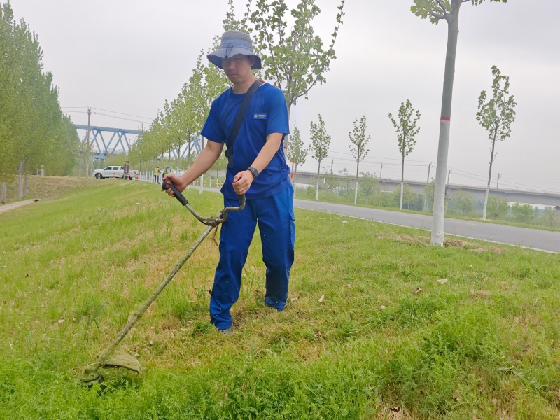 该局高度重视春季工程管护工作,将打草清杂作为工程管理精细化和汛前准备的关键一环。结合辖区堤防长度、坝岸分布、草势长势等实际,明确工作范围、技术标准、时间节点与责任分工,同时,备足打草机、油锯、镰刀等机械装备,组织一线职工开展安全作业与技术标准培训,确保行动高效、安全、有序推进。采用“机械为主、人工为辅、分类施策”的作业模式。对堤坡等开阔区域,动用大型打草机械高效作业,确保修剪整齐、坡面平顺;对坝头拐角、标识桩周边、工程缝隙等机械盲区,组织职工手持工具精细补剪、连根清杂,杜绝漏清、留死角现象。坚持“打草+护堤+查险”三位一体,同步排查堤防裂缝、雨水冲沟等隐患,清理杂草落叶等易燃物,畅通巡查观测通道,既消除杂草遮挡视线、滋生害堤生物、影响工程排水的安全隐患,又降低春季火灾风险。