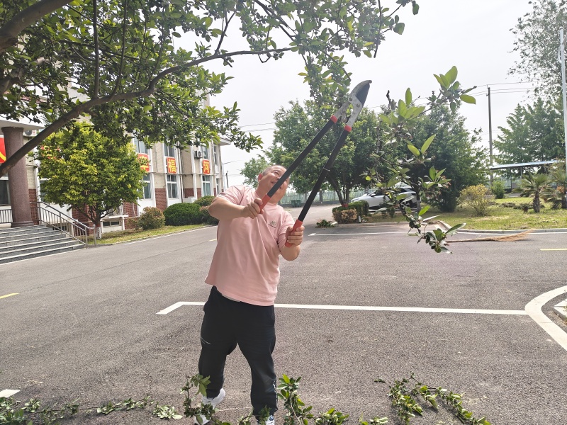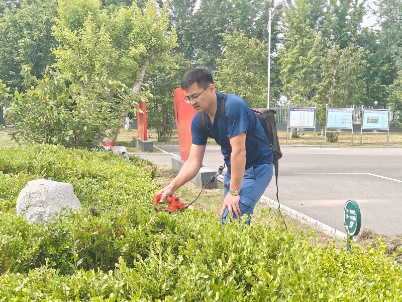 行动中,职工们分工明确、热情高涨,化身“庭院美容师”,有序开展各项整治工作。大家手持工具,沿着绿化带边缘、墙角树下逐片搜寻,捡拾烟头、塑料袋等白色垃圾,做到不留死角、不漏盲区;园艺能手手持修枝剪,精准修剪苗木枝叶,剪除枯枝败叶、梳理杂乱枝条,让绿植造型更显规整挺拔;养护达人对庭院草坪进行精细化整理,清除草坪内枯草杂草,保持草坪平整翠绿;此外,还对办公区域周边的宣传栏、健身设施进行全面擦拭保洁,规整工具房内物资摆放,庭院环境焕然一新。大家相互协作、干劲十足,汗水浸湿工装,庭院整洁清爽。