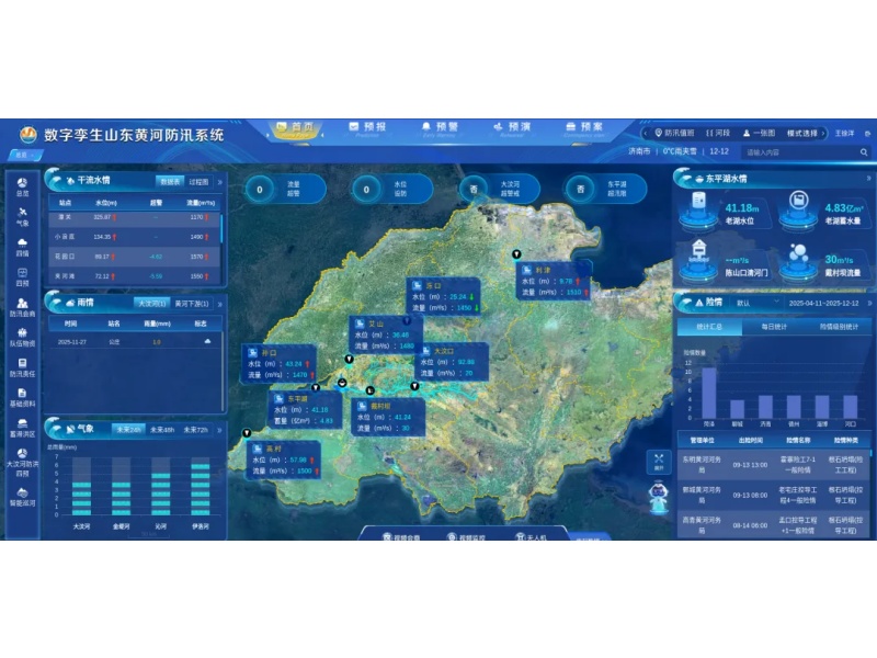 建成数字孪生山东黄河防汛系统和大汶河流域防洪“四预”系统,开发水情分析、会商调度、主溜线识别、冰凌自动监测等模块。联合山东省气象局研发“黄河山东段气象服务保障体系”;建立健全大汶河流域、长平滩区入黄支流、金堤河等12条入黄支流雨水情信息共享联动机制,强化流域协同防汛;迭代升级黄河干流、大汶河、东平湖3个预测预报模型,多次精准预测洪水。