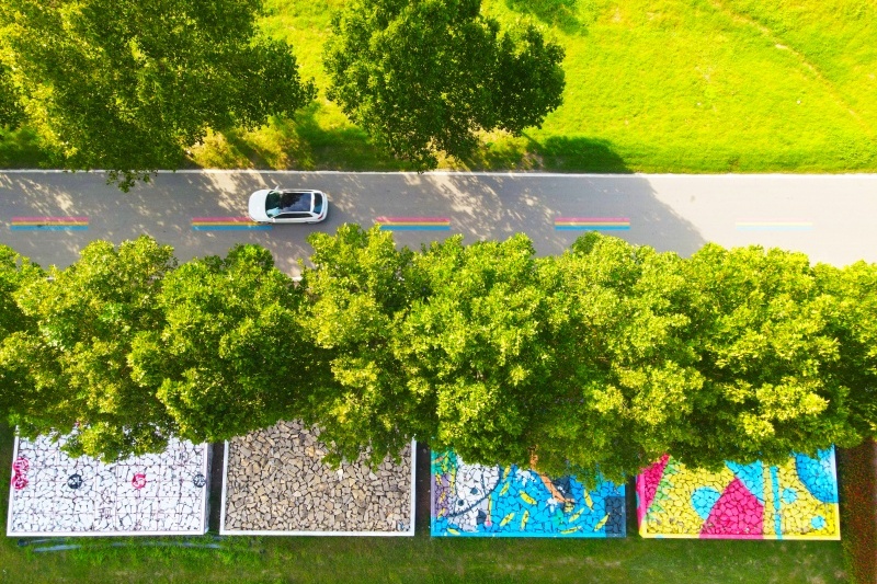堤岸上码放整齐的备防石,点缀着斑斓的彩绘。吉祥的图案、朴拙的祝福,让坚硬的石头也透出几分艺术的温情,与长河、大堤共同构成一幅刚柔并济的画卷。