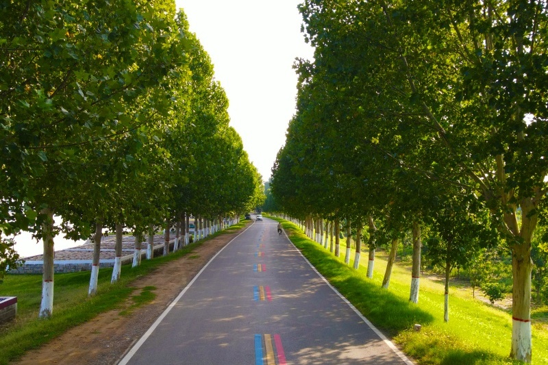 堤顶的彩虹线,红黄蓝相间,如一条彩练依着大堤一路向前。路的另一侧,秋日的黄河敛去了夏日的喧嚣,水色浑黄而澄澈,在阳光下泛着粼粼金波,从容东去,显露出老者般沉静与安详。