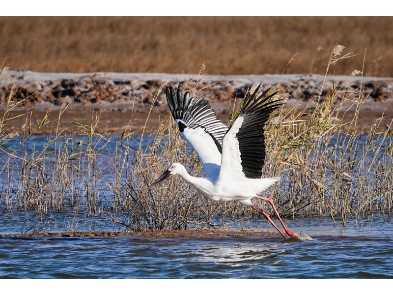 初冬时节,黄河三角洲自然保护区迎来大批越冬候鸟,鹳鹤飞舞、天鹅踏水、白鹭追飞……场面蔚为壮观。(林龙)