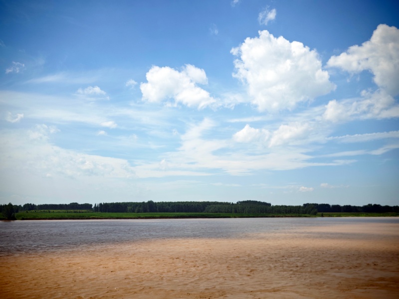 柳叶摇醒了夏天,堤防的浓荫把毒辣的日头滤成细碎的光斑,一阵风吹过,凉意裹着草木香扑面而来。黄河拉扯着天上的云影奔涌向前。汛期流量大,裹了更多的泥沙,浪花的颜色便越发浓郁起来。远眺是漫天白云悠悠,身旁是河水奔腾不息,蝉鸣、风声、水声纠缠在一起,这里有些吵,心跳的节奏却静得刚好。