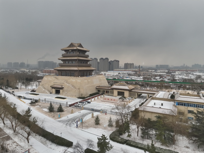 极目处,那曾挟泥沙而吼、卷雷霆而奔的巨流,此刻竟如一条银线,轻轻缝在苍茫大地上。雪落得厚,落得稳,仿佛天地有意为之,要为这条喧腾千年的河披一件素衣,让它歇一歇,想一想。河水未冻,却不再咆哮,只在冰凌与雪影之间,低语着往昔的浪涛——那些被冲走的村庄、沉没的舟楫、岸边守望的灯火,都成了雪层下沉默的碑文。
