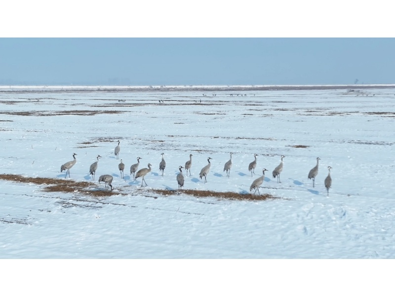 该段王高寨、辛店集2处控导工程周边湿地,天鹅、豆雁、灰鹤等20余种候鸟或在雪覆的浅滩觅食,或展翅掠过芦苇河面,洁白的羽毛与雪地相映成画;尤为珍贵的是,国家一级保护动物白鹳与黑鹳也现身滩区,鲜红的喙爪在白雪中格外醒目,印证着此处生态环境的优质。金色芦苇在寒风中轻摇,为候鸟提供了天然庇护所,候鸟的“长居”得益于持续的生态治理,通过“三阶递进”植绿模式构建防护网,启用“无人机高空扫描+人工徒步+视频监控”立体化巡护,设置文明观鸟标识,杜绝惊扰在此越冬的各类候鸟。