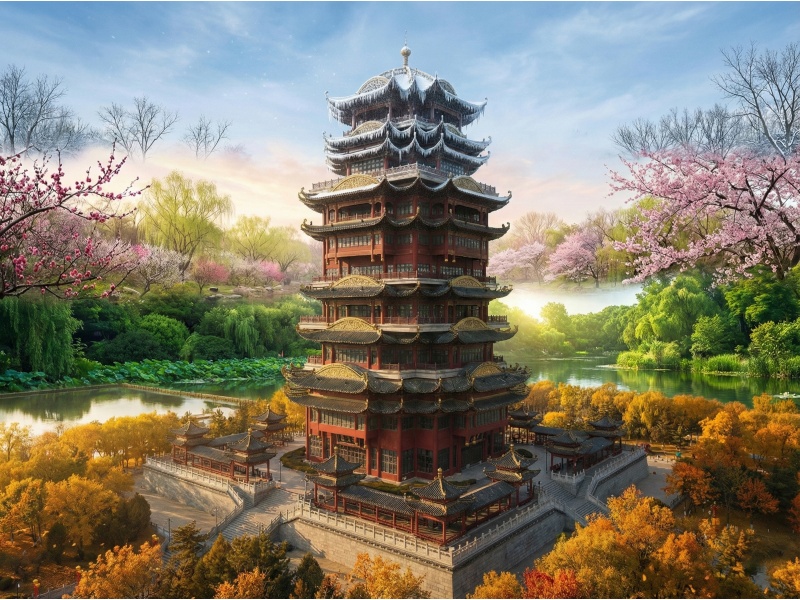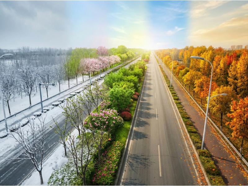 夏风漫过黄河大道时,千亩林带织就绿的屏障,浮桥在浪涛里稳稳托住往来的车轮;秋霜染透堤岸,栾树举着满枝金果,与黄河大桥的钢桁铁骨相映成趣,落日把河波烫成碎金,连冰凌初结的冬日,都有雪后的古楼在银装里守着河声。