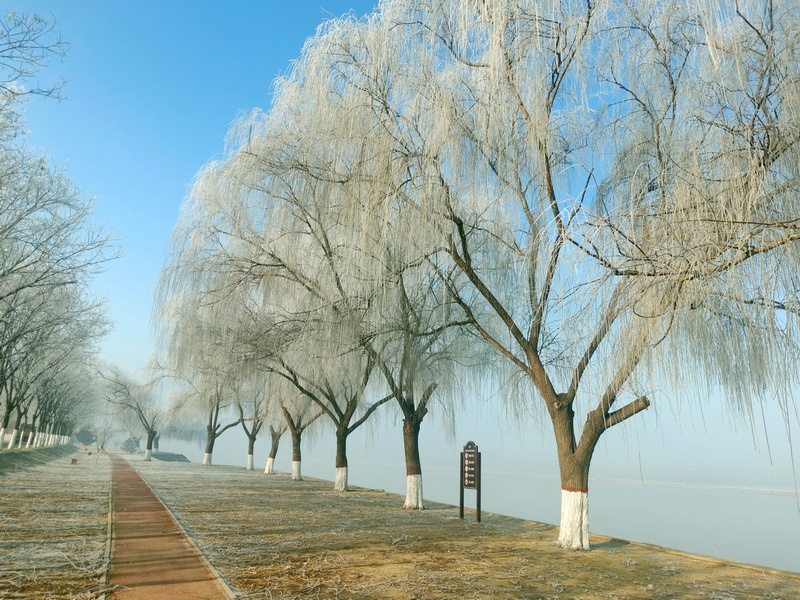 雾凇的美妙,正在这“各美其美”。柳的飘逸,竹的清透,松的俊朗,槐的朴拙,皆以冰为魂,却因风骨不同而各展风华。伫立长堤,看冰晶渐染朝晖金晕,雾凇在暖意中渐渐消融,这转瞬即逝的冰雪美景,是冬天最后的深情诗篇,亦是春天悄然将至的温柔预告。(马洁)