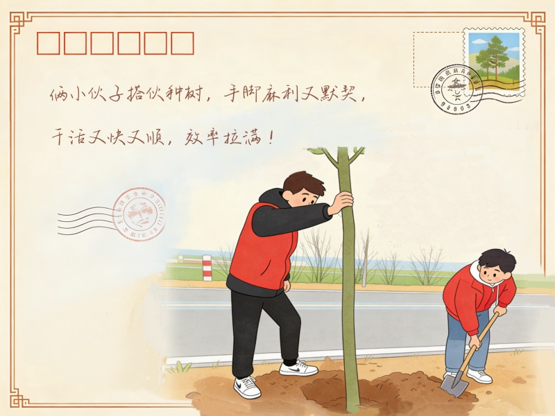 红色的身影在堤岸上跃动,大家分工协作:一人稳稳扶着树苗,一人挥锹培土,动作干练又娴熟。铁锹起落间,带着新芽的树苗扎根泥土,为略显萧瑟的堤坡添上鲜亮的绿意。