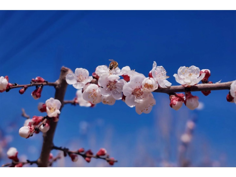 春的降临,从来都这般轻柔,不过是一朵杏花开,一只蜜蜂至,便把整个春日的生机尽数唤醒,化作满枝温柔。花瓣如素净信笺,花蕊似朱砂印泥,春天写下的每一笔美好无需署名,却能让万物动容。