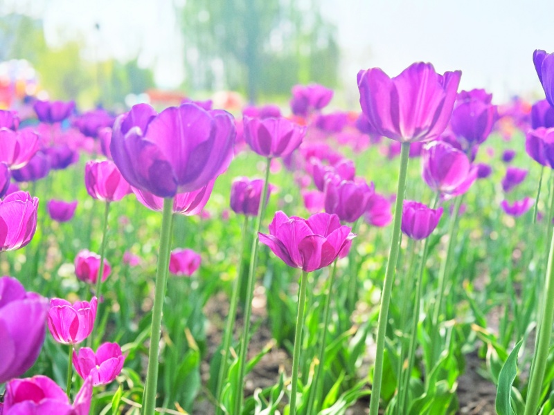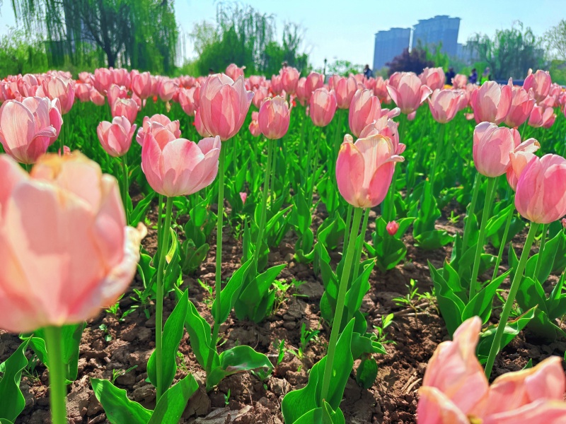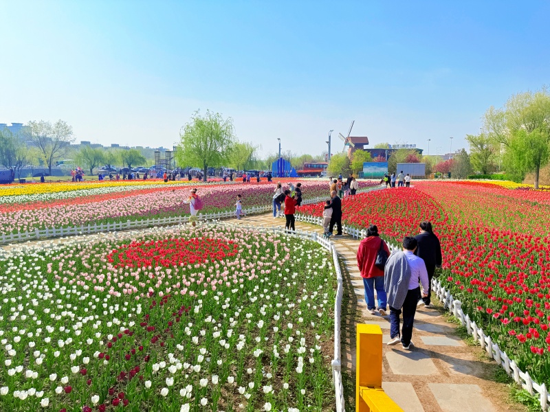 春和景明,万物勃发。近日,滨州经济技术开发区秦皇河公园内百万株郁金香竞相绽放,绯红似霞、明黄似金,沿河道铺展成绚丽花带。