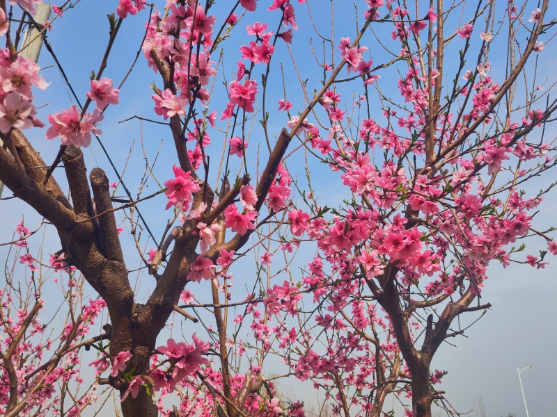粉艳桃花缀满枝头,热烈明媚、灿若云霞,尽显生机盎然;素白梨花冰清玉洁,淡雅温润、香风细细,平添几分清幽。红白交织,疏密相宜,与庭院景致相融,一步一景皆诗意。
