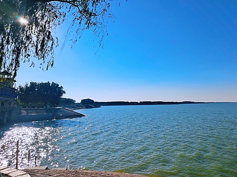 4月的东平湖,一眼望去全是绿色。树木也长得茂盛,一棵挨着一棵,叶片密密实实的,嫩绿嫩绿,看着就精神。水面也是淡绿色的,很平静,偶尔有条鱼跳出来,溅起一圈水纹,很快又恢复了原样。沿着湖岸走,能闻到青草和树叶的气味。阳光照在湖面上,亮得有点晃眼。空气暖洋洋的,风吹在脸上不冷也不热。苗木茂盛,水波轻柔,春天就是这样,不用多说,绿意自己就长出来了。(王琴琴)