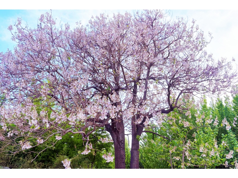 年复一年,梧桐的年轮里镌刻满了治黄人的故事:谁曾在树下耐心地教儿子辨认第一株破土的草芽,谁在退休前最后抚摸过它皲裂却坚韧的树皮,谁又在某个疲惫的午后靠在树干上小憩……它始终沉默不语,却用每朵花的绽放、每片叶的舒展,将那些琐碎而温暖的时光编织成永恒的诗行,让每一个经过的人都能读懂其中的深情与坚守。