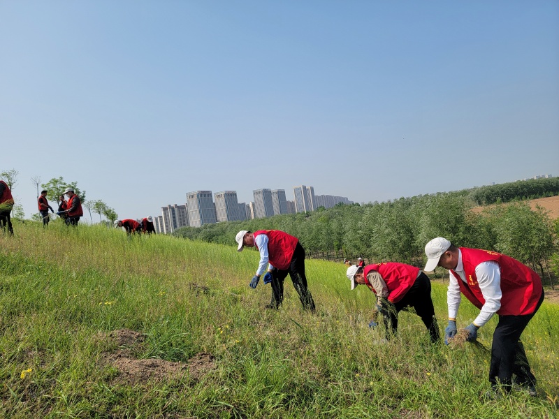 活动现场,志愿者身穿红马甲,按照划分好的责任区段,躬身拔除堤坡上贴地生长的高秆杂草。尽管堤坡坡度较陡、行动困难,但没有一个人叫苦叫累。大家你追我赶,忙活得热火朝天,充分彰显了济南黄河干部职工昂扬向上的奋斗姿态和政治担当。经过一个多小时的连续奋战,志愿者们共清理堤坡长度约200米,清除杂草面积近8000平方米。原本杂草丛生的黄河堤坡变得清爽整洁,工程面貌焕然一新。