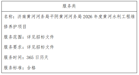 二、项目名称:济南黄河河务局平阴黄河河务局2026年度黄河水利工程维修养护项目
