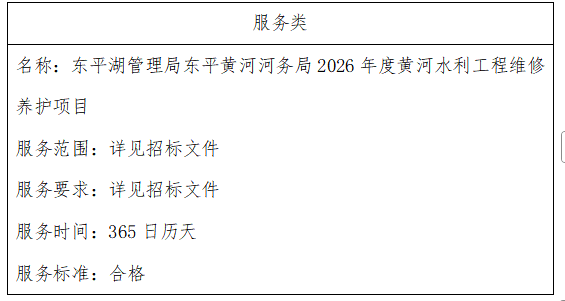 二、项目名称:东平湖管理局东平黄河河务局2026年度黄河水利工程维修养护项目
