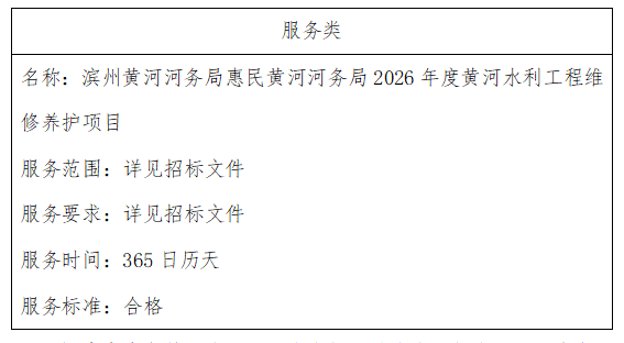 二、项目名称:滨州黄河河务局惠民黄河河务局2026年度黄河水利工程维修养护项目