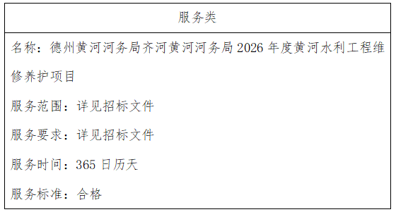 二、项目名称:德州黄河河务局齐河黄河河务局2026年度黄河水利工程维修养护项目