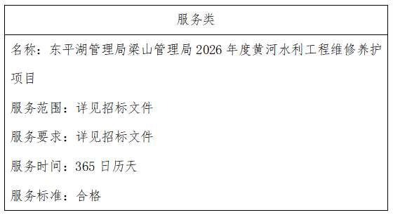 二、项目名称:东平湖管理局梁山管理局2026年度黄河水利工程维修养护项目