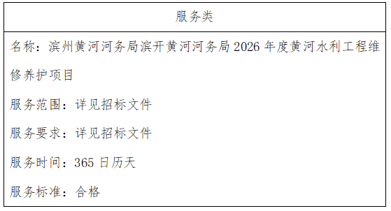 二、项目名称:滨州黄河河务局滨开黄河河务局2026年度黄河水利工程维修养护项目