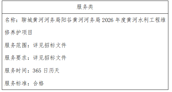 二、项目名称:聊城黄河河务局阳谷黄河河务局2026年度黄河水利工程维修养护项目