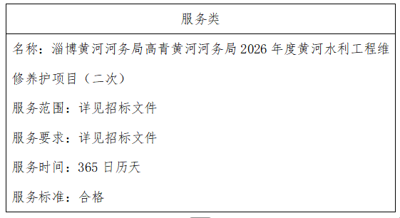 二、项目名称:淄博黄河河务局高青黄河河务局2026年度黄河水利工程维修养护项目(二次)