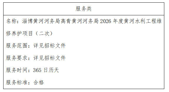 二、项目名称:淄博黄河河务局高青黄河河务局2026年度黄河水利工程维修养护项目(二次)
