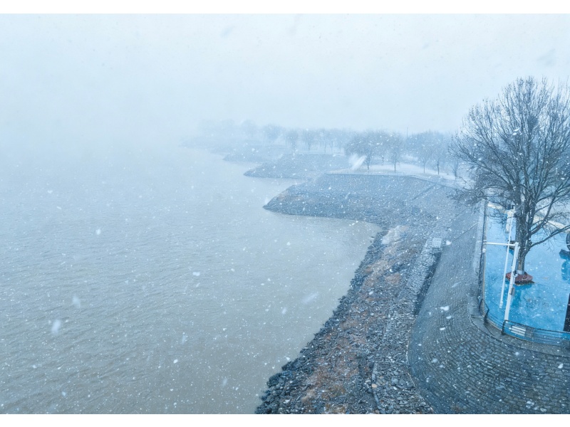 雪落长堤,天地清宁。大河蜿蜒静流,河水与堤畔残雪相映成趣,勾勒出初春时节雄浑秀美的黄河图景。时近元宵、上灯伊始,微雪添雅韵,清景映初心,既有民俗温情,更显山河安澜。